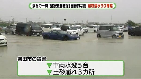記録的な大雨…浜松市で一時「緊急安全確保」発令 浸水被害96棟で車も水没 3