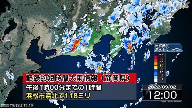 浜松市浜北と浜松市南部付近に記録的な大雨 災害の危険迫る - https://t.co