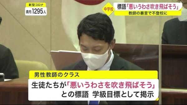教師の暴言で不登校に 標語「教師の悪いうわさ吹き飛ばそう」をクラスに掲