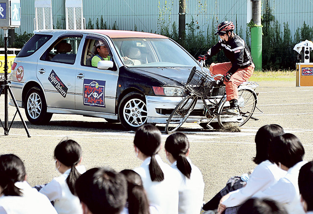 スタントマンが事故再現 浜松啓陽高、安全運転大切さ学ぶ|あなたの静岡新