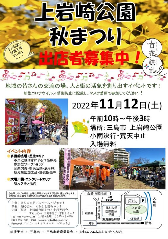 三島市上岩崎公園秋まつり:出店者募集中です。 - 野村りょう子(ノムラリ
