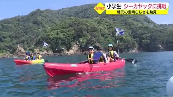 地元の海で生き物やジオサイトを観察 小学生がシーカヤック体験 静岡・西伊