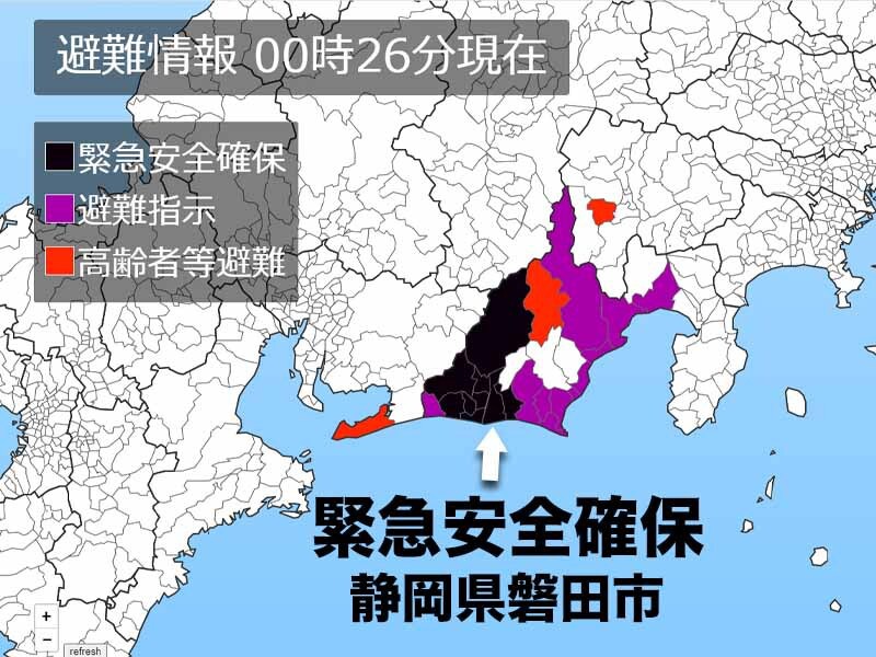 静岡県磐田市に「緊急安全確保」発令 警戒レベル5 命を守る行動を - ウェザ