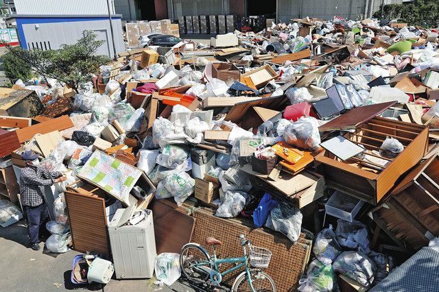 台風15号 静岡市清水区で災害ごみが大量発生 仮置き場の公園に山積み - 東