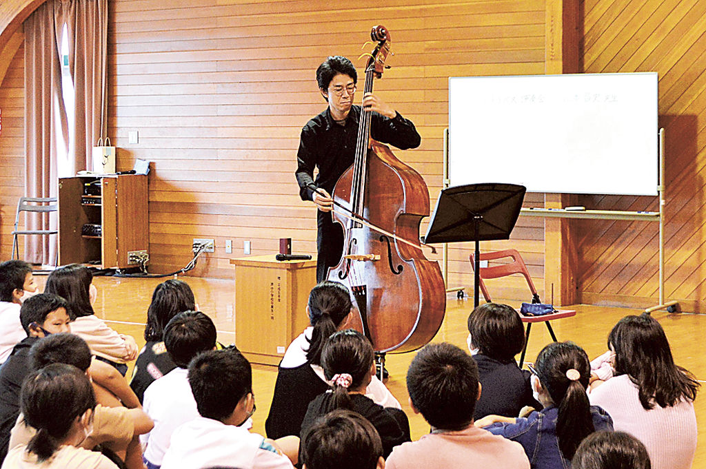 コントラバス 児童が堪能 奏者山本さん(掛川出身)原谷小で演奏|あなたの