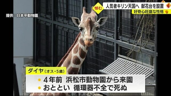 人気者キリンが天国へ 園内に献花台 「今までありがとう」日本平動物園|FN