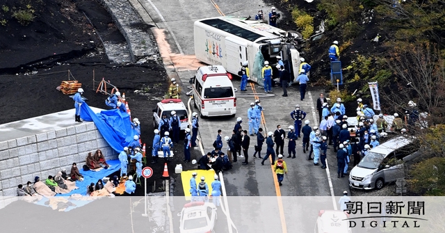 バス横転の後続車4台に小学生117人 車内で5時間「がんばった」:朝日新聞