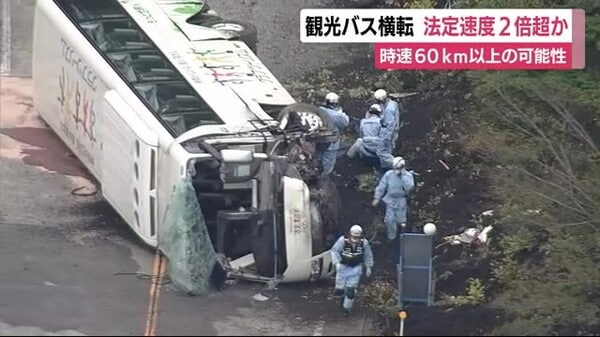 観光バス事故 法定速度2倍の時速60km以上で走行か 運転手「ブレーキ利かな