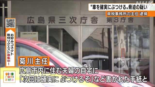 県税事務所の主任を逮捕 “車を確実にぶつける” と手紙か|NHK 広島のニュー