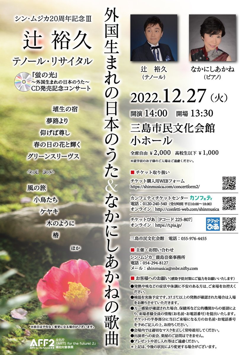 『辻裕久テノールリサイタル 外国生まれの日本のうた&なかにしあかねの歌曲』開催決定 カンフェティでチケット発売 – PR TIMES https://t.co/VbVhDuX9xF #静岡県 #静岡県東部 #三島市 https://t.co/XlPGXYYc6d