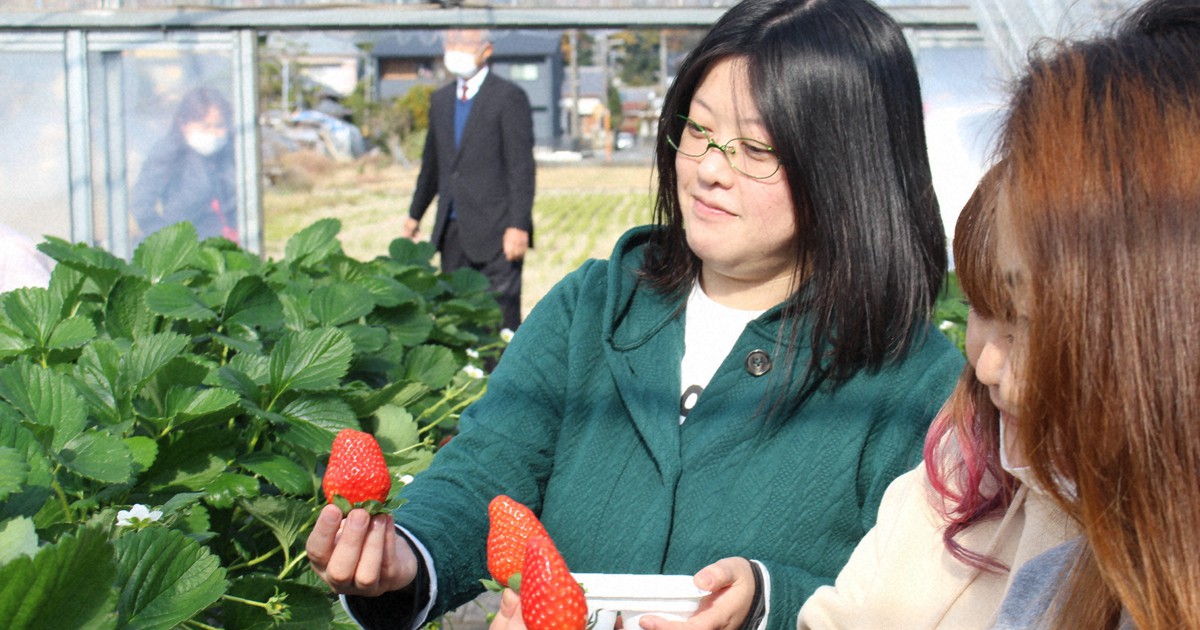 もぎたて「紅ほっぺ」頰張って 観光イチゴ園が開園 静岡・伊豆の国 - 毎日