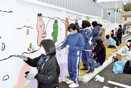 コミカル「鳥獣戯画」35メートル 薬局駐車場に巨大壁画描く 伊東高城ケ崎分校美術部|静岡新聞アットエス – @S[アットエス] by 静岡新聞 https://t.co/KvIrOslulq https://t.co/5vYqnflUZM