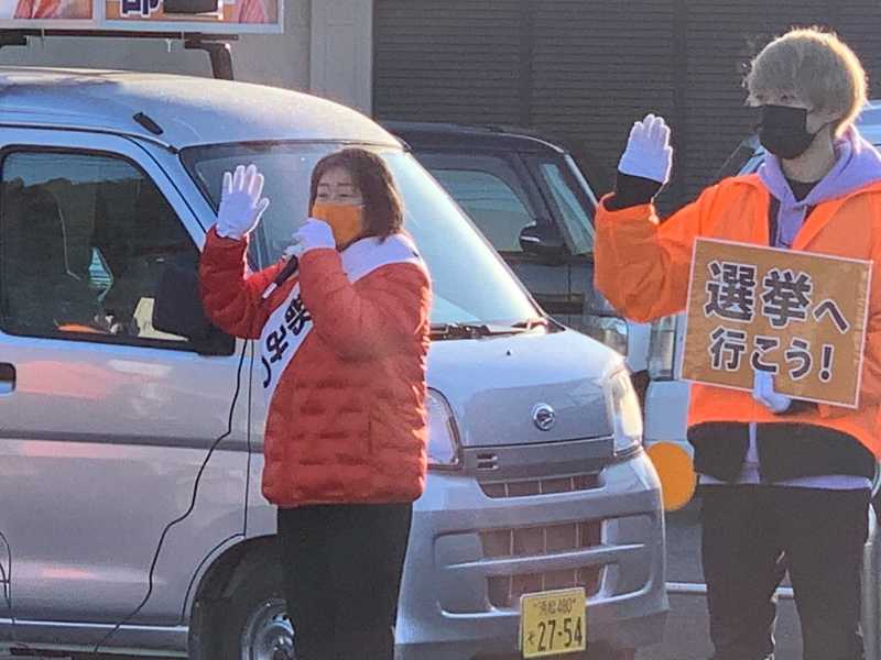 菊川市議会議員選挙2021.1.21選挙戦5日目朝は横地の工業団地入口からスター