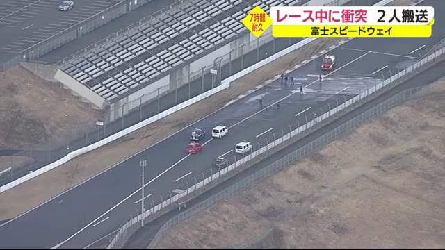 7時間耐久レース中に車衝突1台炎上 2人救急搬送 静岡・小山町 (テレビ