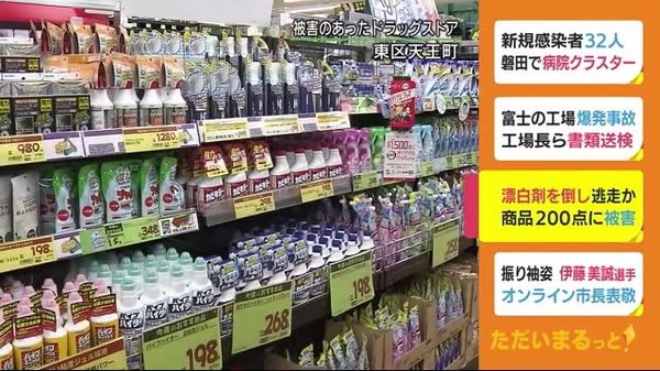 “液体漂白剤”を商品棚に流し… 46歳の女 器物損害容疑で逮捕 静岡・浜松市