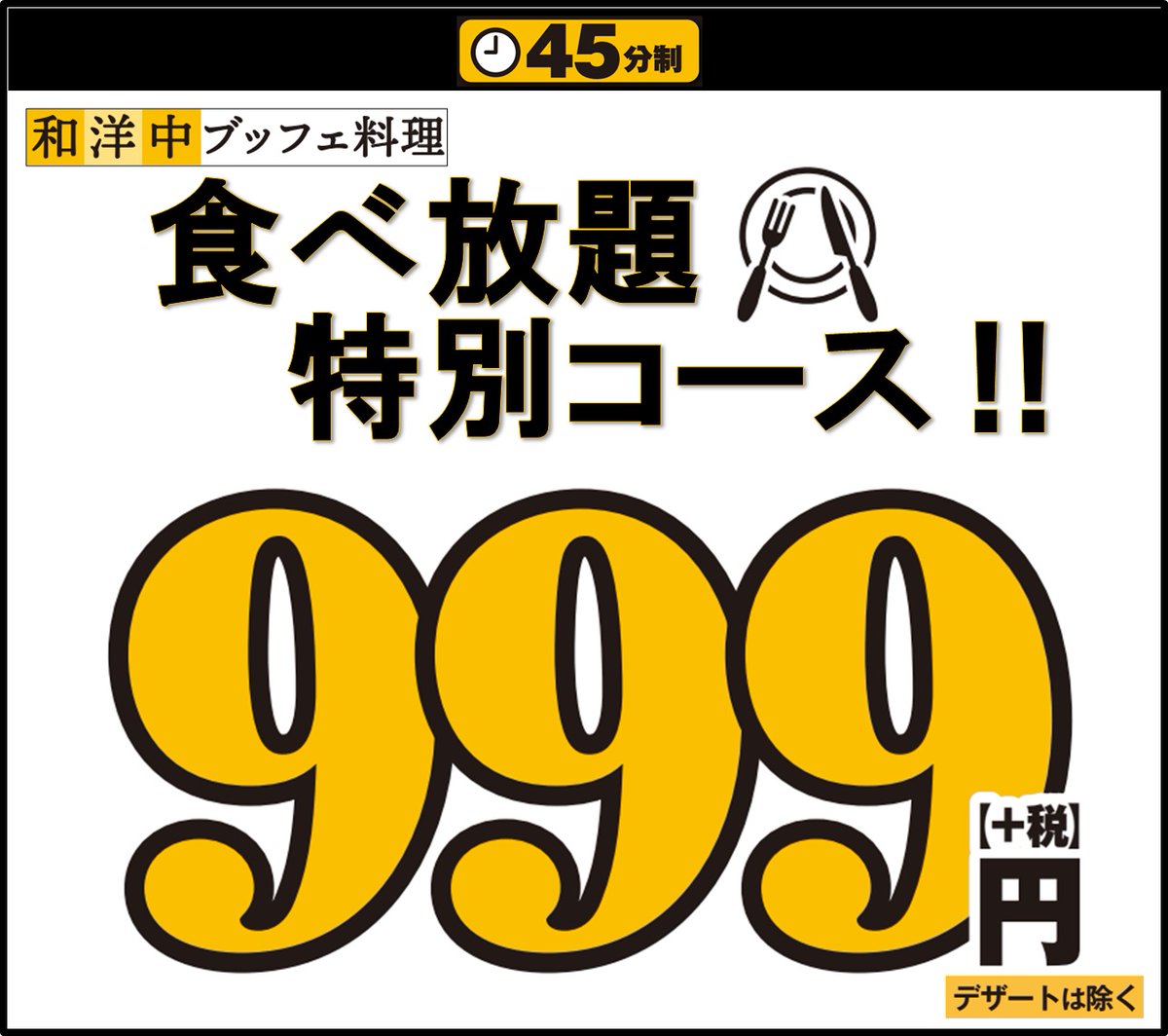 驚きの価格!! 45分間の特別コース食べ放題が「999円(税抜)」でお得に満喫