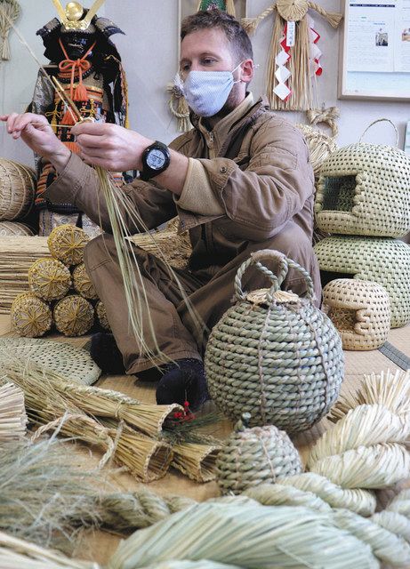 わら細工職人目指す英出身のマイケルさん奮闘 初の外国人職人へ期待 - 中日