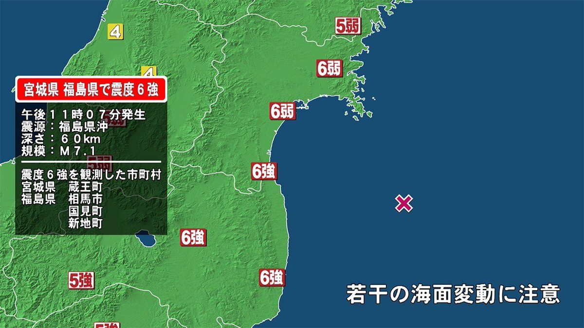 宮城南部、福島中通り、福島浜通りで震度6強(2月13日午後11時8分) - http