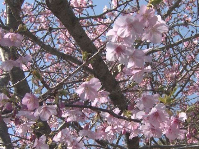 早くも3-4分咲きに…早咲きの河津桜が見ごろ 1月末から淡いピンクの花が咲き