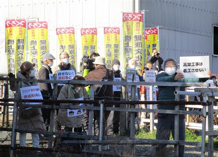 静岡県が行政代執行 沼津鉄道高架用地の看板など撤去 反対派は無言の抗議 -