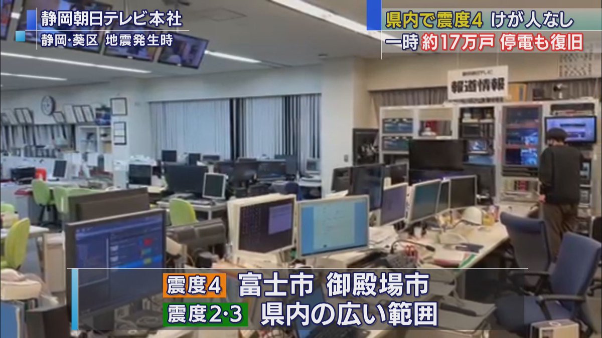 福島県沖地震で静岡県内震度4 一時約17万戸停電もすべて復旧(静岡朝日テレ