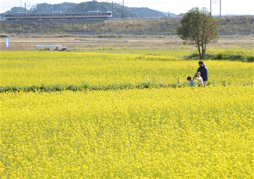 満開の菜の花、電車と共演 湖西・前向地区、黄色のじゅうたん|静岡新聞ア