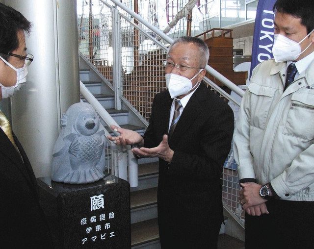 <新型コロナ>アマビエ石像 終息に願い 伊東の石井石材が市に寄贈 - 東京