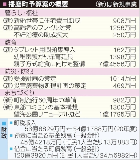 子育て支援や介護予防に重点 播磨町21年度当初予算案 - 神戸新聞 https:/