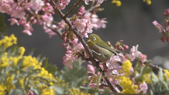 メジロも遊びに 河津桜とミモザが一足早く競演 香川・小豆島(KSB瀬戸内海