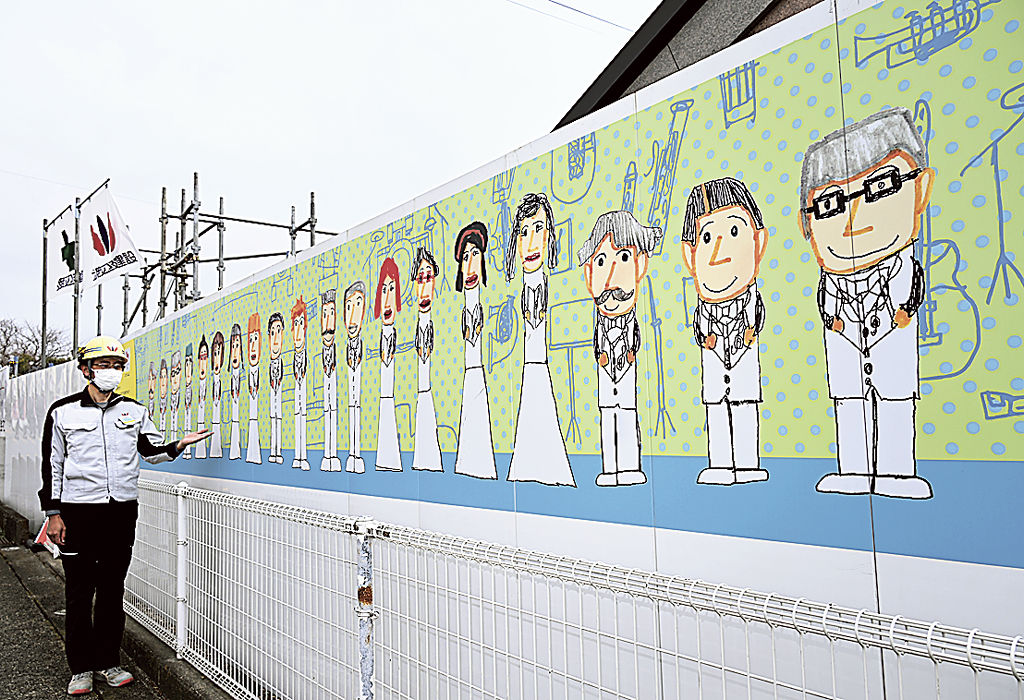 裾野の渡辺建設 工事現場 仮囲いに障害者アート 見る人楽しく 沼津・大岡中