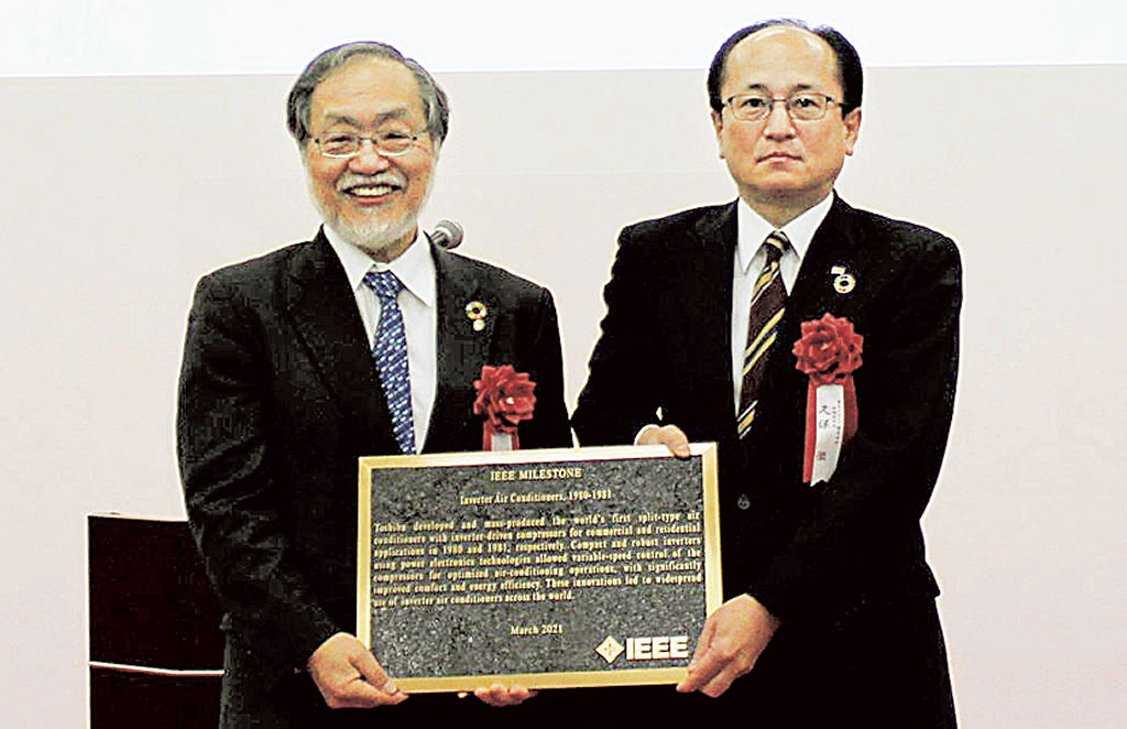 インバータエアコン マイルストーン賞 東芝キヤリア富士事業所に銘板|あな