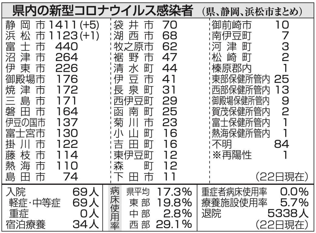 4人死亡、6人新規感染 22日の静岡県内【新型コロナ】(あなたの静岡新聞)