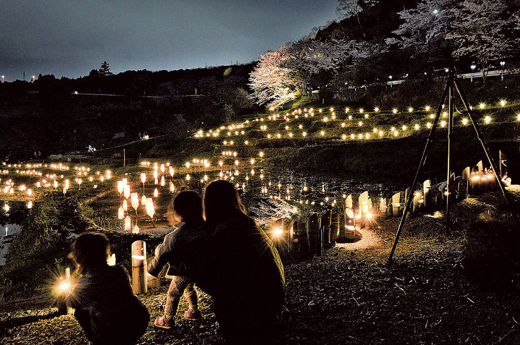 棚田照らす 幻想的な光 菊川であぜ道アート(あなたの静岡新聞) - Yahoo!