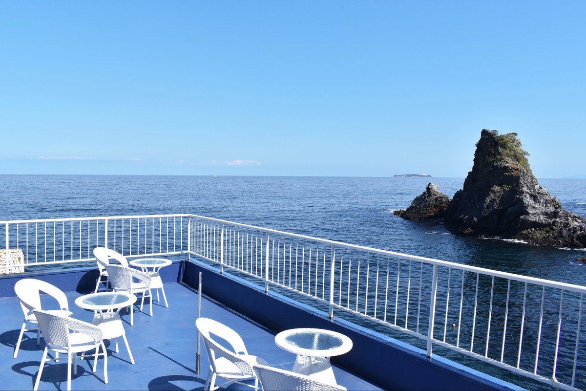 ホテルニューアカオ1階に錦ヶ浦の奇岩と海を眺めるダイナミックテラス『海