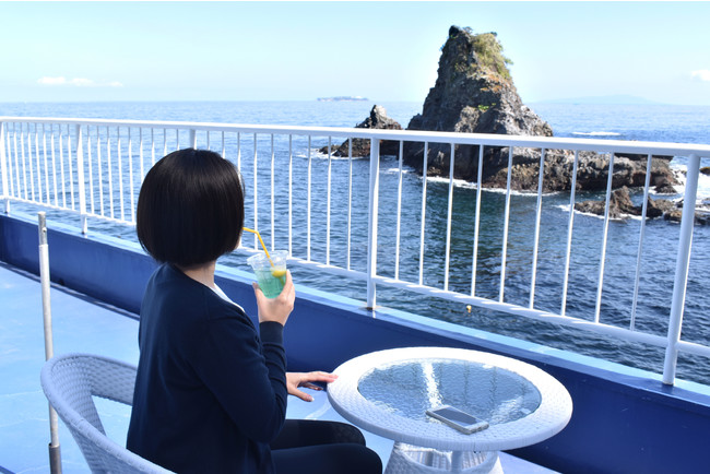 ホテルニューアカオ1階に錦ヶ浦の奇岩と海を眺めるダイナミックテラス『海