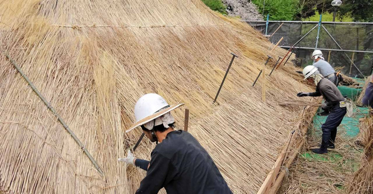 大和の古民家「旧小川家住宅」、かや屋根のふき替え始まる - カナロコ(神