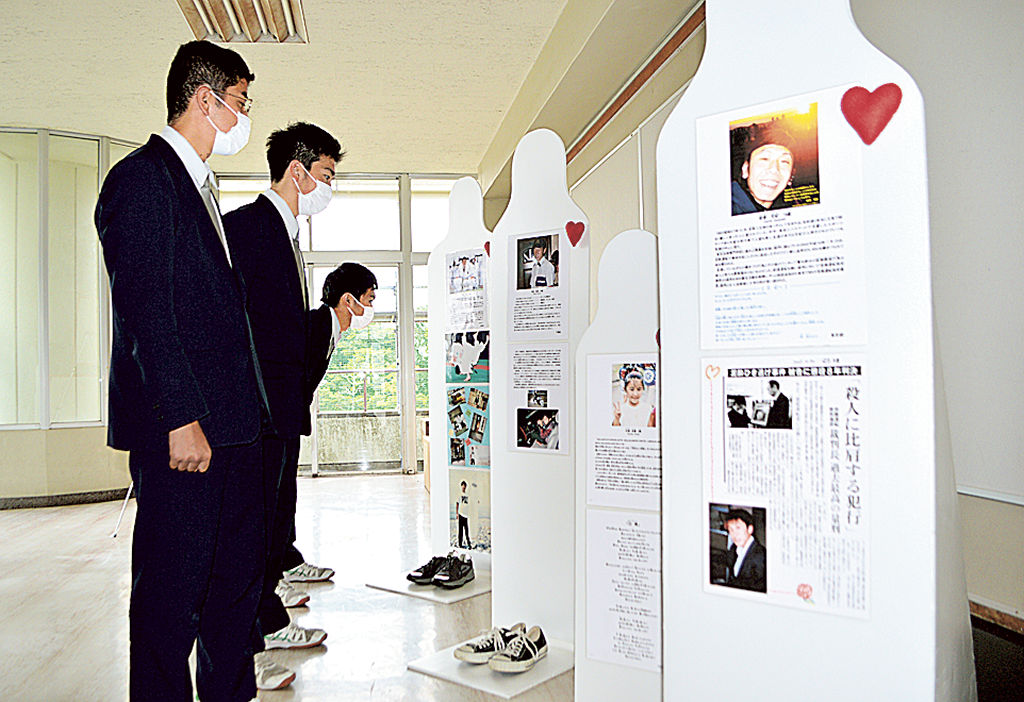 交通事故犠牲者の遺品展示 浜松江之島高でパネル展、命の大切さ伝える|あ