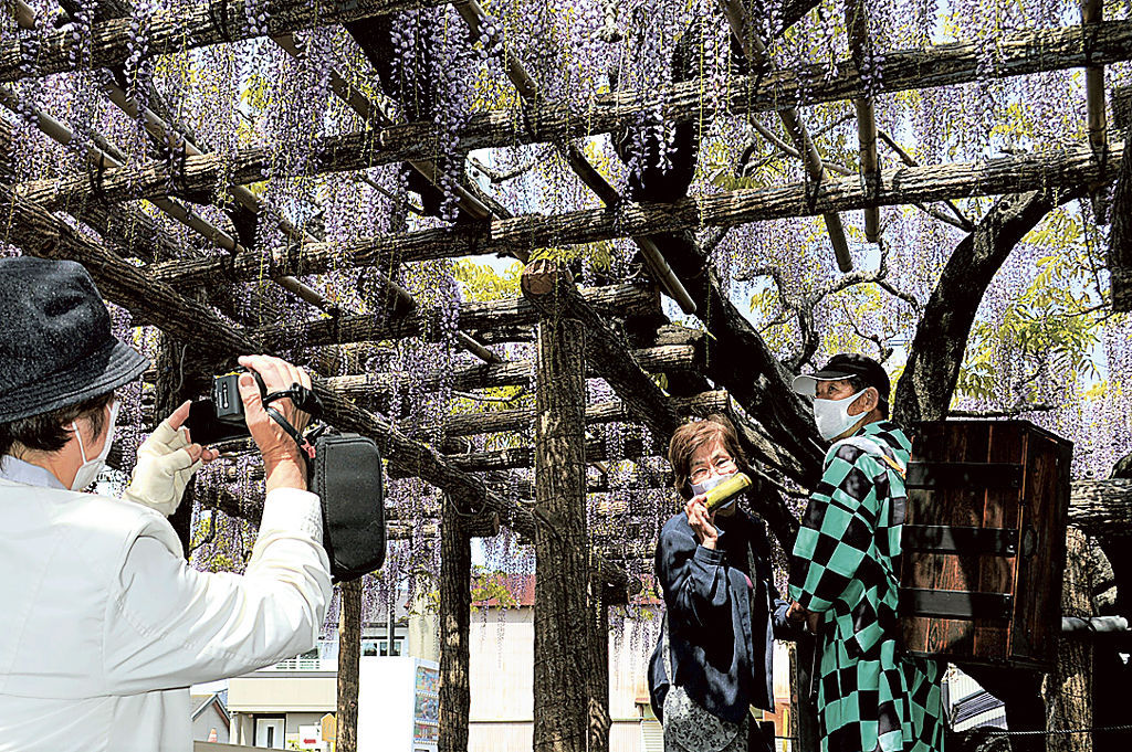 「炭治郎」気分で長藤鑑賞いかが 「鬼滅」コスプレグッズ用意 牧之原・東光