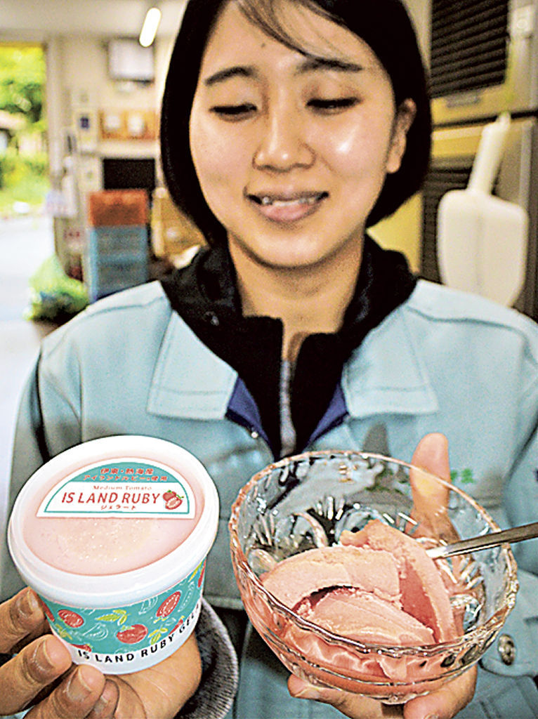 アイランドルビー ジェラート発売 JAあいら伊豆、特産目指すトマト使用(あ