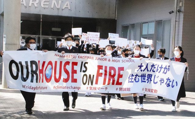 「気候変動サミット」へ全校生徒が校内マーチ 浜松開誠館中高 - 中日新聞 h