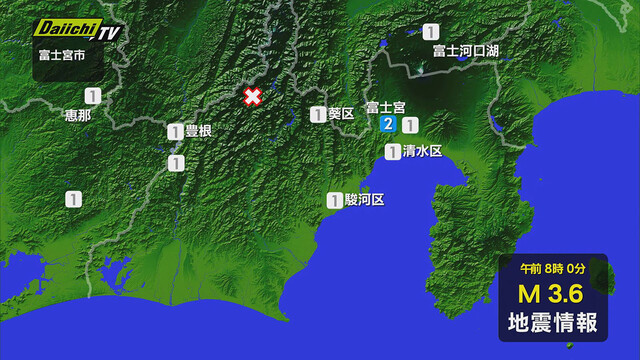 午前8時地震発生 富士宮市で震度2を観測(Daiichi-TV(静岡第一テレビ)