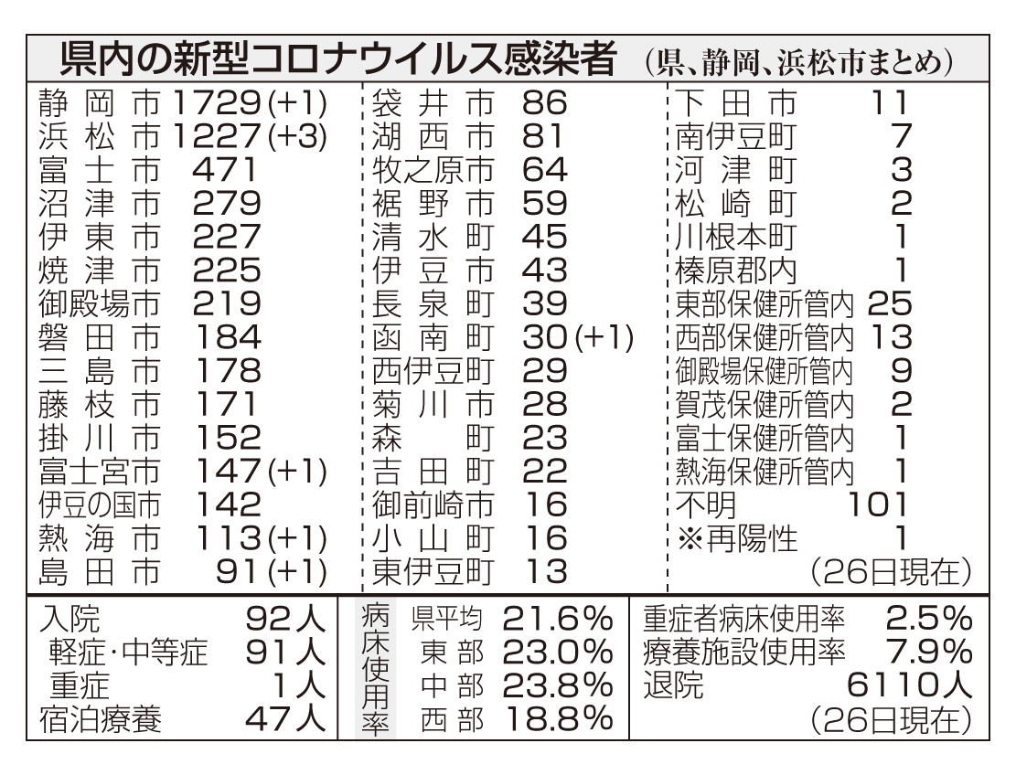 静岡県ニュースでは、静岡県エリアの主要ニュースやお得な情報など配信していきます。>8人感染、3週間ぶり10人下回る 26日の静岡県内【新型コロナ】|あな