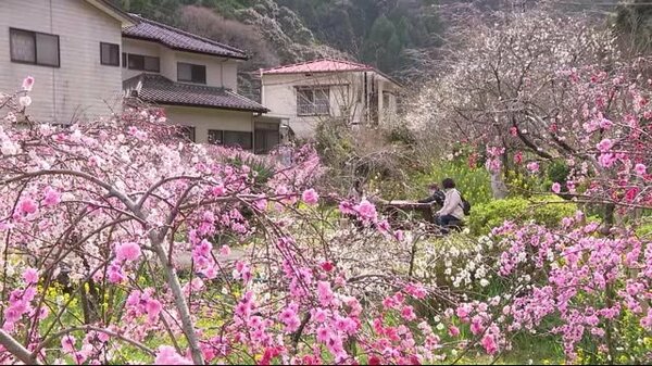春の訪れ 見頃迎えた枝垂れ桃と枝垂れ桜 静岡・下田市 - FNNプライムオンラ
