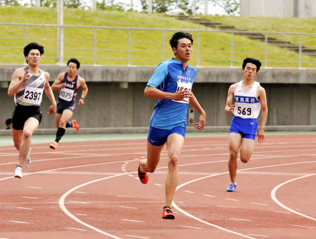 陸上県選手権/西岡(四学香川西高)優勝 男子400 森本(小豆島中央高)