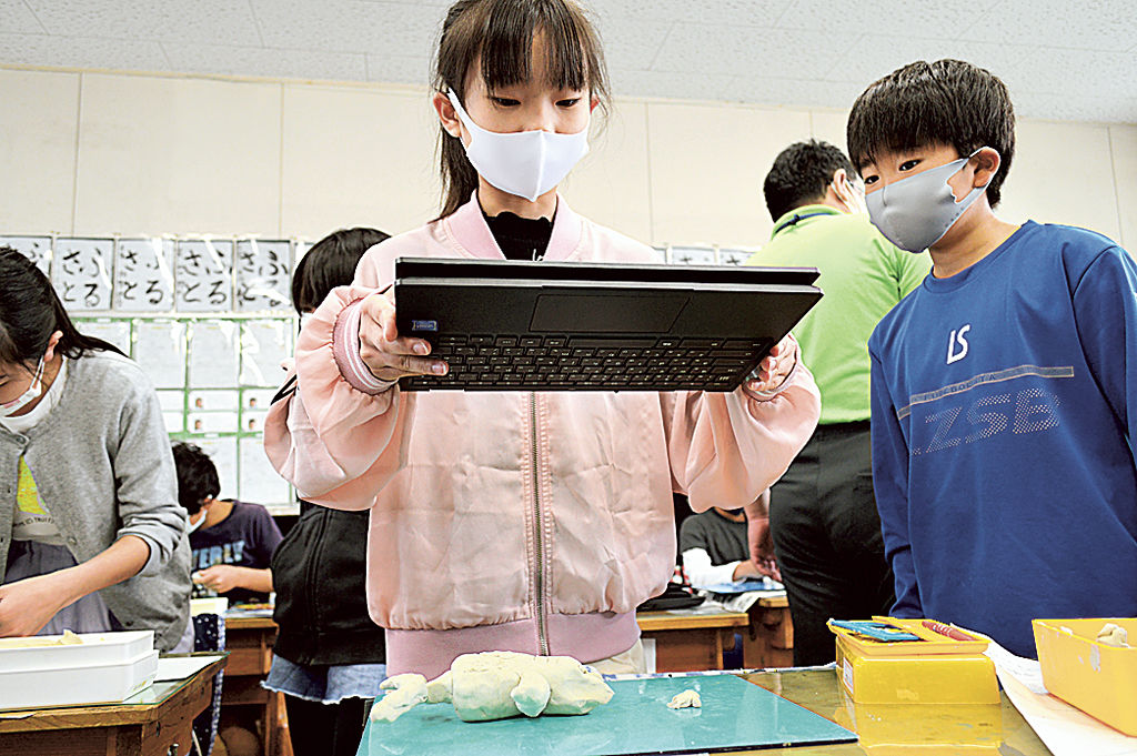 粘土作品撮影、動画に編集 磐田の富士見小児童、デジタル端末で図工授業|