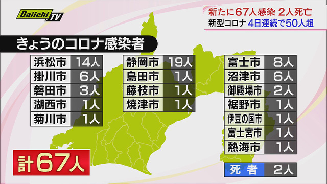【新型コロナ】静岡県内で新たに67人感染 2人死亡|NNNニュース - 日テ