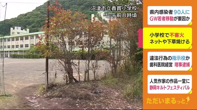 小学校の校庭でボヤ ネットや下草が燃える 不審火とみて捜査 静岡・沼津市