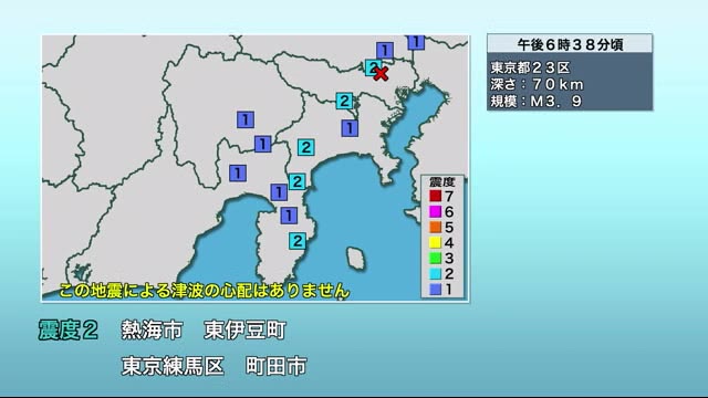 東京23区が震源 熱海と東伊豆で震度2(テレビ静岡NEWS) - Yahoo!ニュー