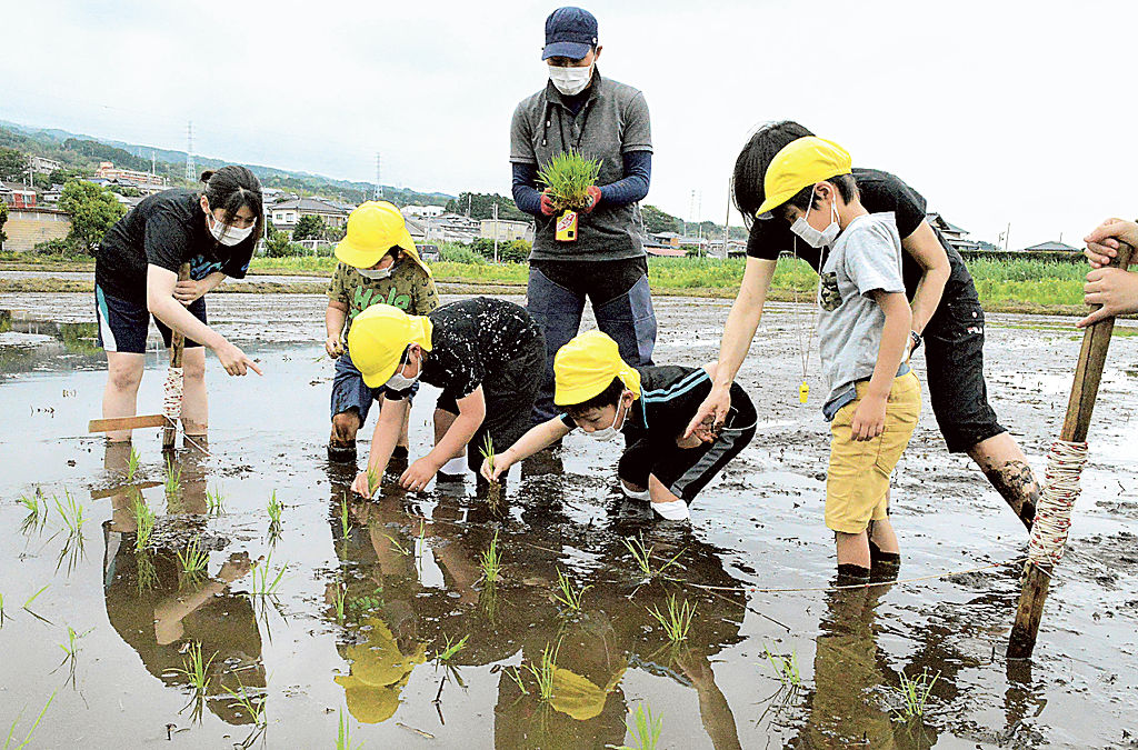 田植え体験 「おいしいお米になあれ」 泥まみれ 真剣に 沼津・浮島保育園|