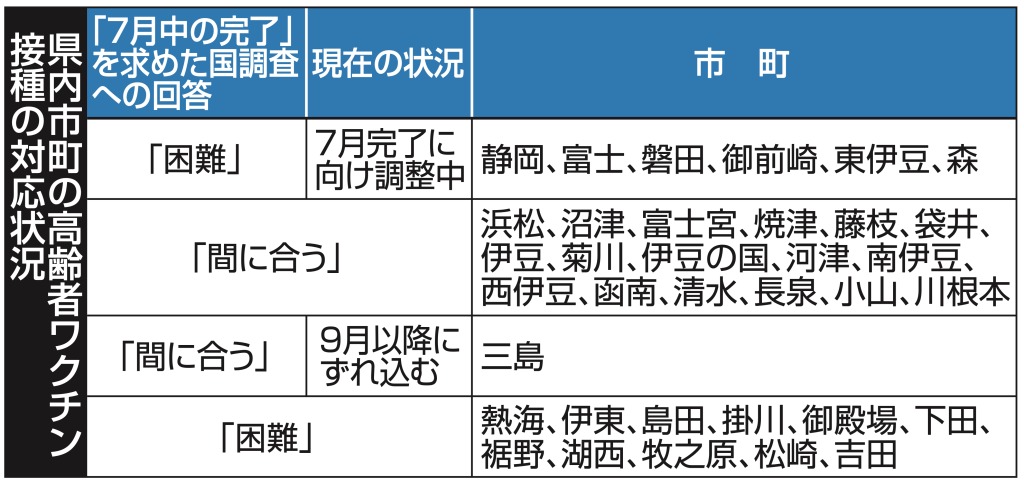 コロナワクチン高齢者接種 7月完了、静岡県内24市町調整|あなたの静岡